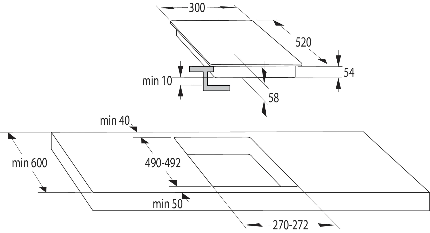 Ширина ниши для встраивания, мм