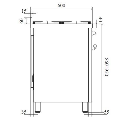 - Тип конфорок: газовые, варочная зона Fry-Top
