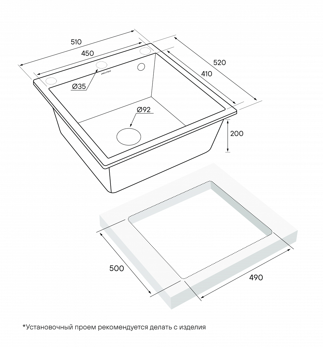 Мойка кухонная Paulmark KANTE 50 из IT-GRANIT.