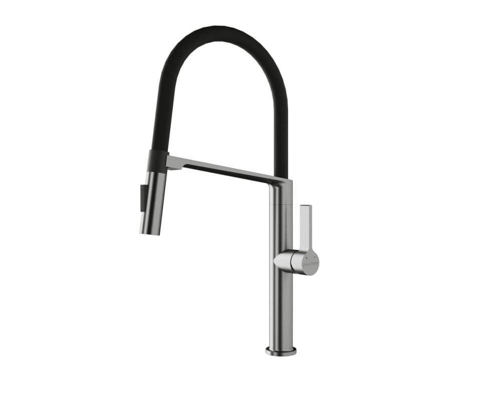 Излив смесителя выполнен из высокопрочного силикона. Конструкцией предусмотрен магнитный механизм фиксации излива.