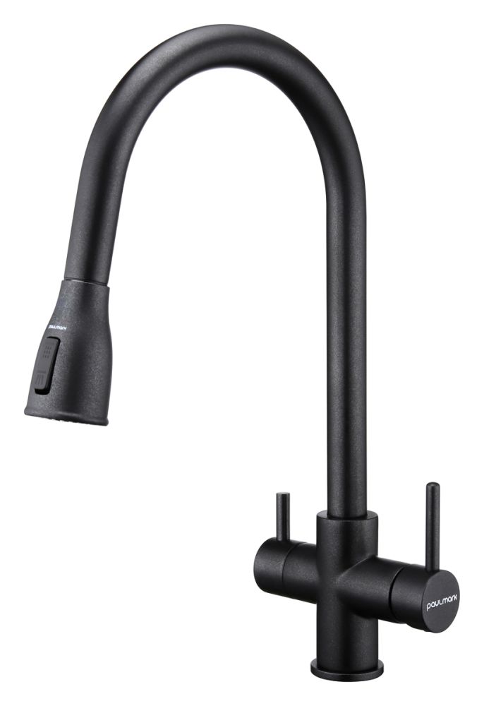 Смеситель LANGE оснащен функциями подключения фильтра питьевой воды, выдвижения излива и двумя режимами подачи водопроводной воды: струя и душ.